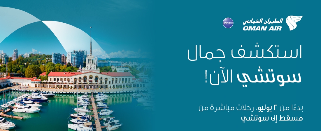 يسر الطيران العُماني، الناقل الوطني لسلطنة عُمان، أن يعلن عن توسيع شبكته الدولية عبر إطلاق رحلات اسبوعية مباشرة جديدة إلى مدينة سوتشي الروسية، في خطوة تعزّز الربط الجوي بين سلطنة عُمان وروسيا وتفتح آفاقًا أوسع لحركة السفر والسياحة بين البلدين. ومن المقرر أن تبدأ الرحلات اعتبارًا من 2 يوليو 2026 وتستمر على مدار العام. مما يتيح للمسافرين ربطًا مباشرًا يضمن سهولة الوصول إلى واحدة من أبرز الوجهات الترفيهية في روسيا والمطلة على البحر الأسود.